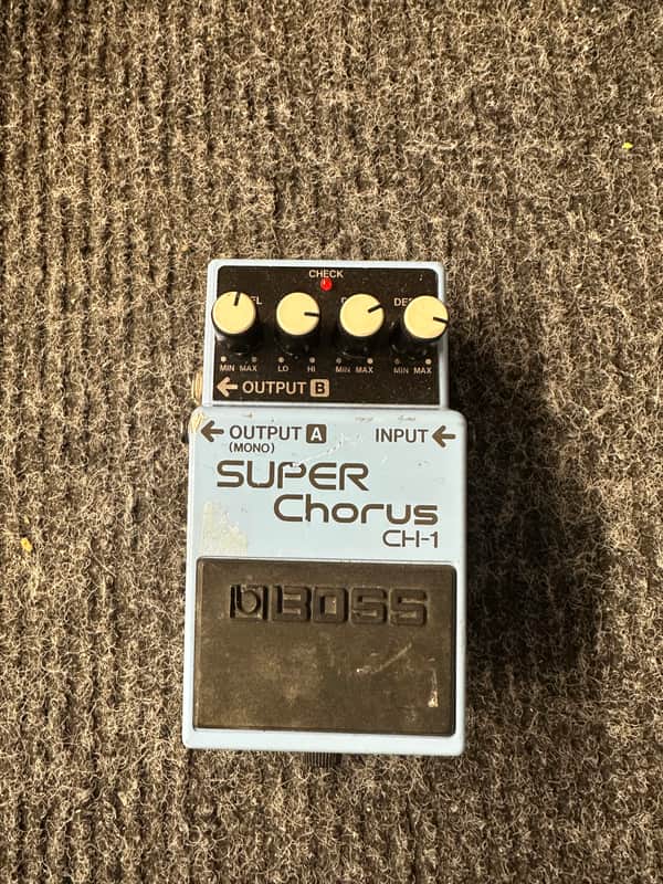 Boss CH-1 super chorus. The pedal is inpretty good shape. Shows minimal wear. It works as it should.