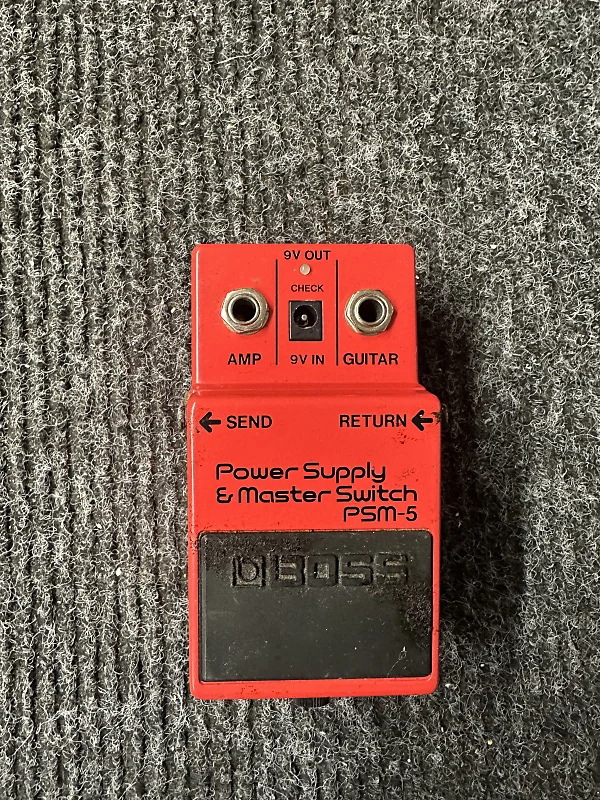Boss PSM-5 power supply and master switch. The pedal is overall in good shape. Shows minimal wear. Works as it should.