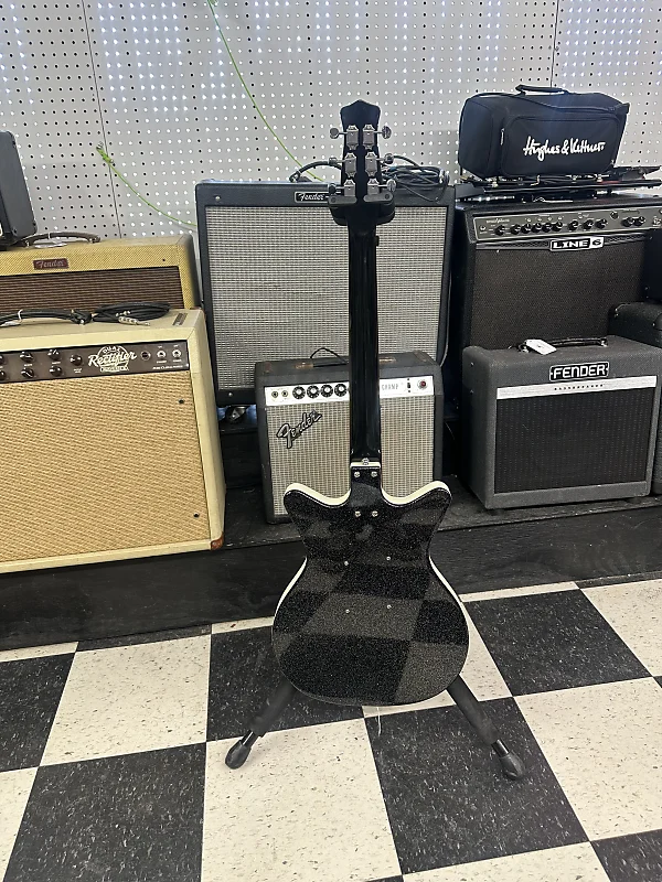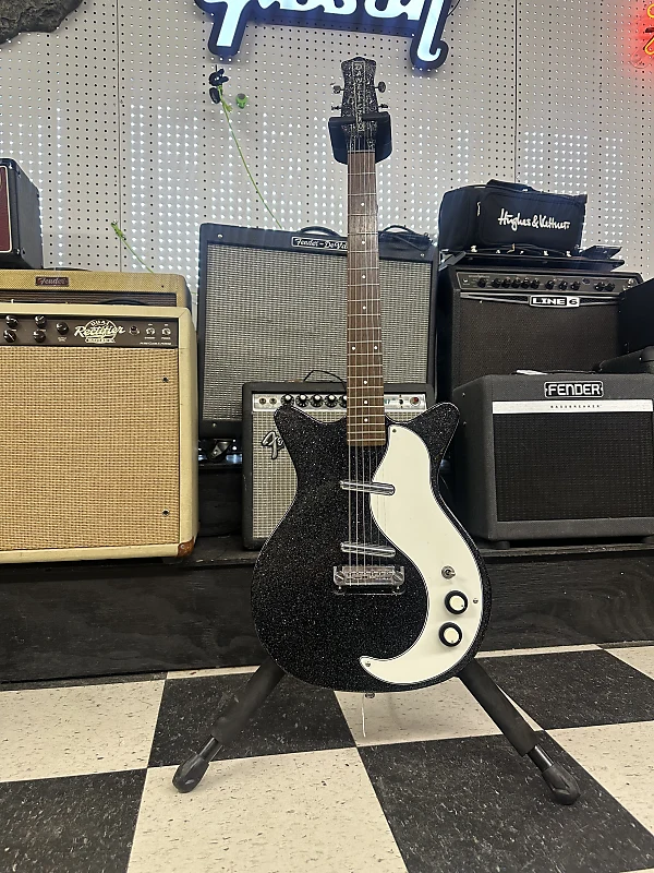 Danelectro 59MJ. In great shape. Shows minimal wear. No big dings or scratches. The electronics work on the guitar as they should. It sounds great. The action is low and it plays well. This is a Super Cool Dano Guitar. The Black Sparkle Finish makes it truly look Awesome. Stop by the shop and check it out.