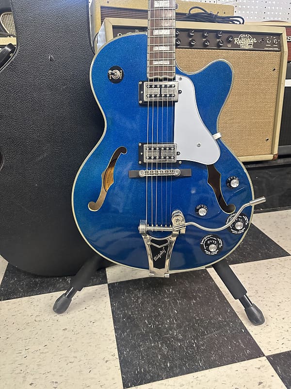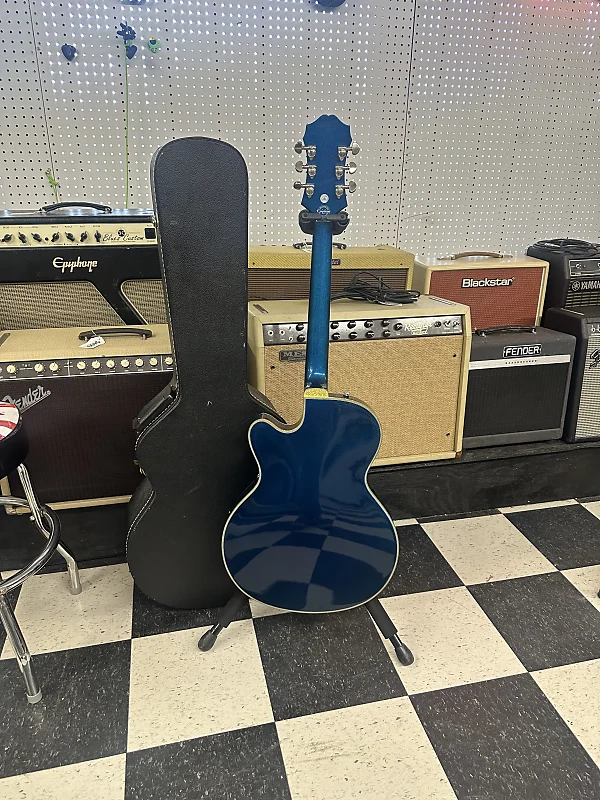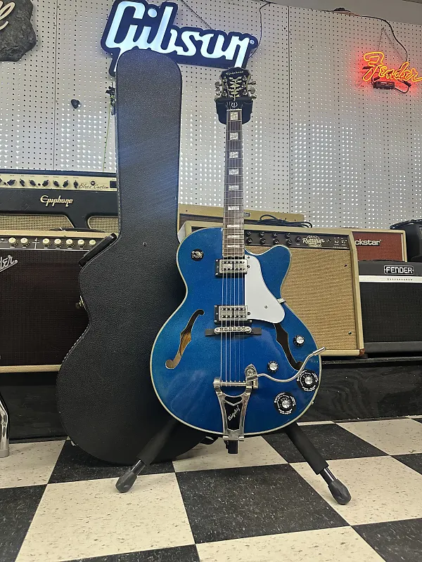 Epiphone Swingster Royale. In great shape. Shows very minimal wear. No big dings or cracks. The electronics work on the guitar as they should. The action is low and it plays well. It comes in a hard shell case.