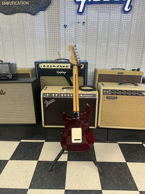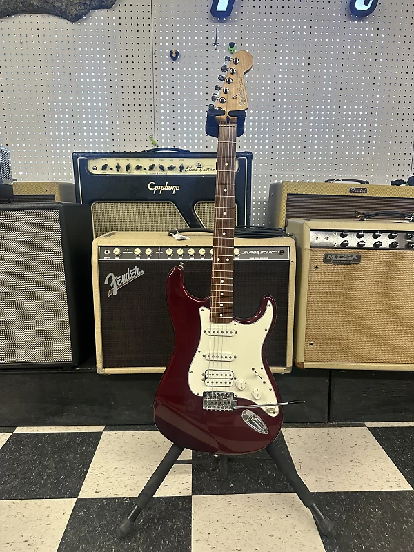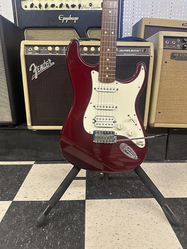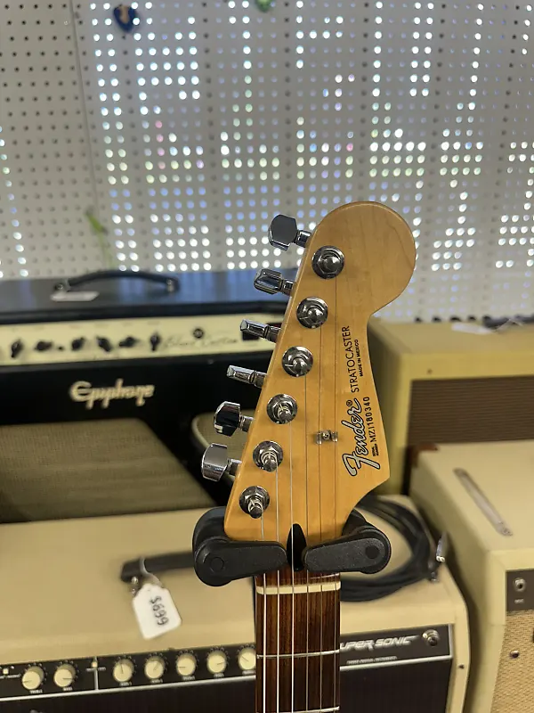 2001 MIM HSS Stratocaster. In good shape. A few small blemishes. No big cracks or dings. Minimal wear. The electronics work on the guitar as they should. The action is low and it plays well. It comes In a gig bag.