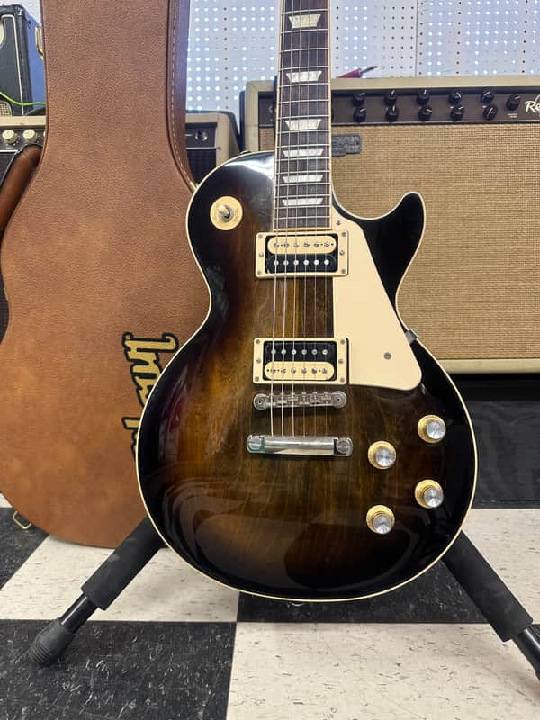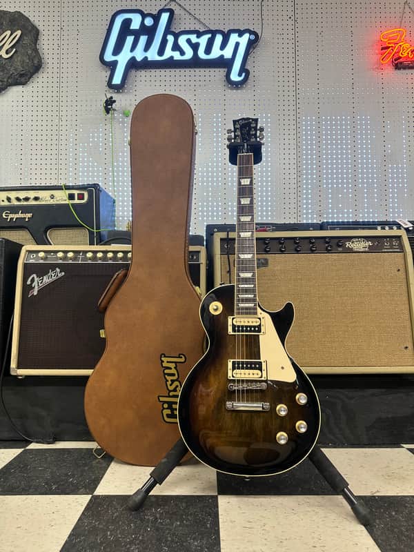 2020 Gibson Les Paul Classic. In pretty good shape. It has a few blemishes, some light scratches and buckle rash on back. No cracks or repairs. The electronics work on the guitar as they should. The action is low and it plays Great. It comes In the original case.