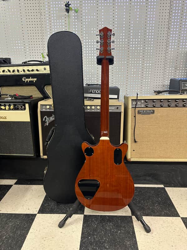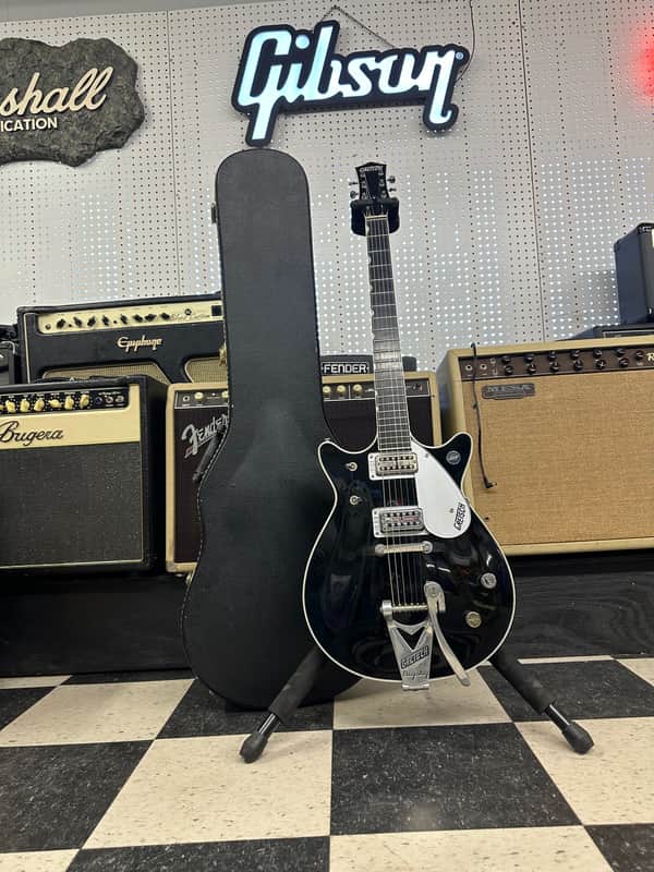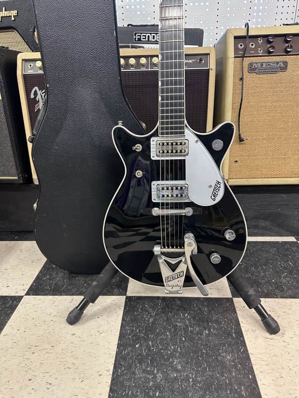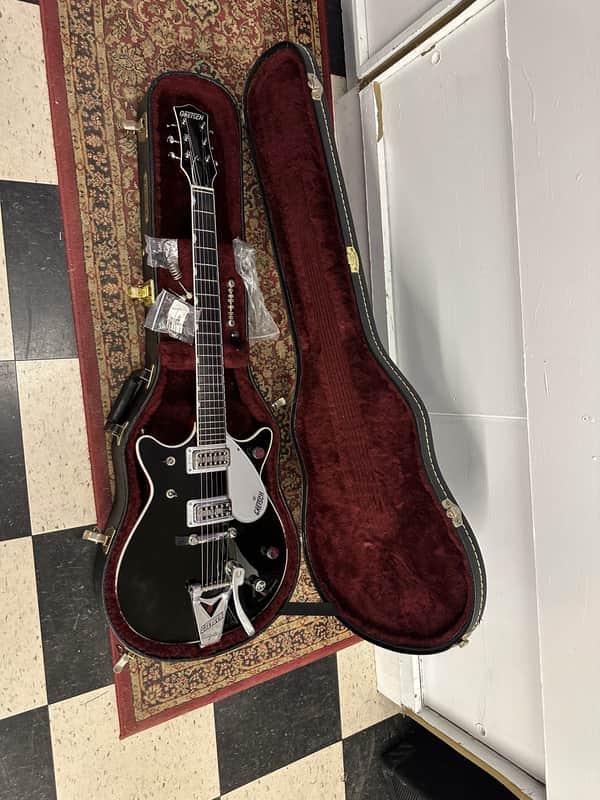 Gretsch Duo Jet. Made in Japan. Overall in nice shape! A few small blemishes. No cracks, or repairs. Super light weight. The electronics work on the guitar as they should. The action is low and it plays Great. It comes In the original hard case.