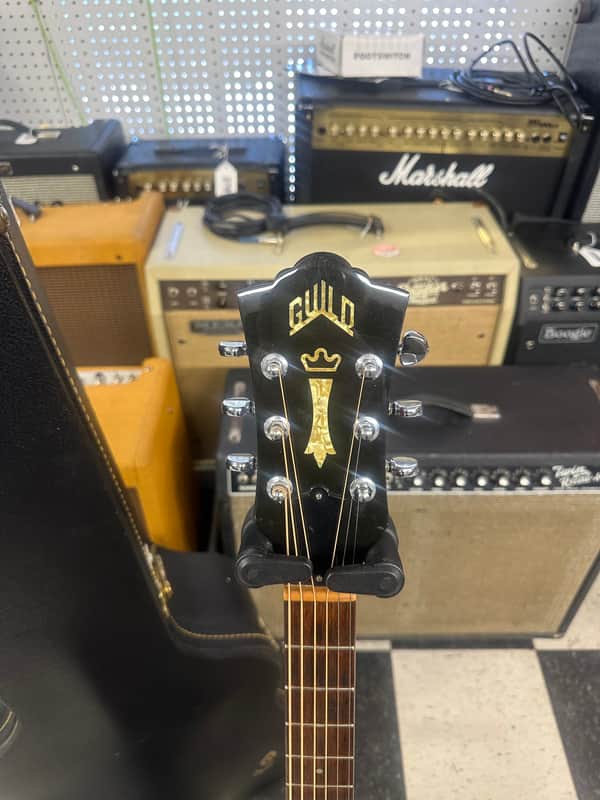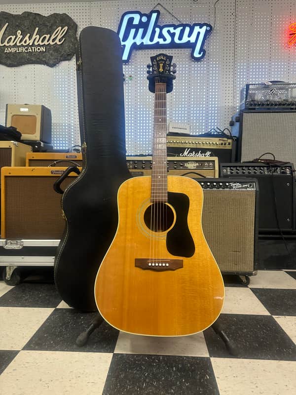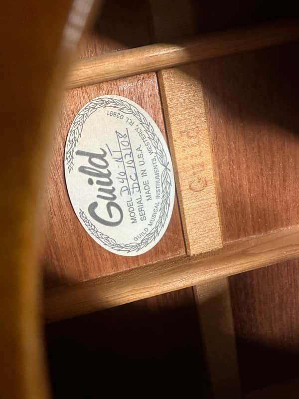 1985 Guild D40 acoustic. Made in USA. In great shape for the age. Some dings and small blemishes you would expect to see. No cracks or repairs from what I can tell. The action is low and it plays Great. It comes In a hard Guild case.