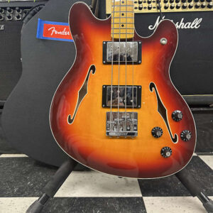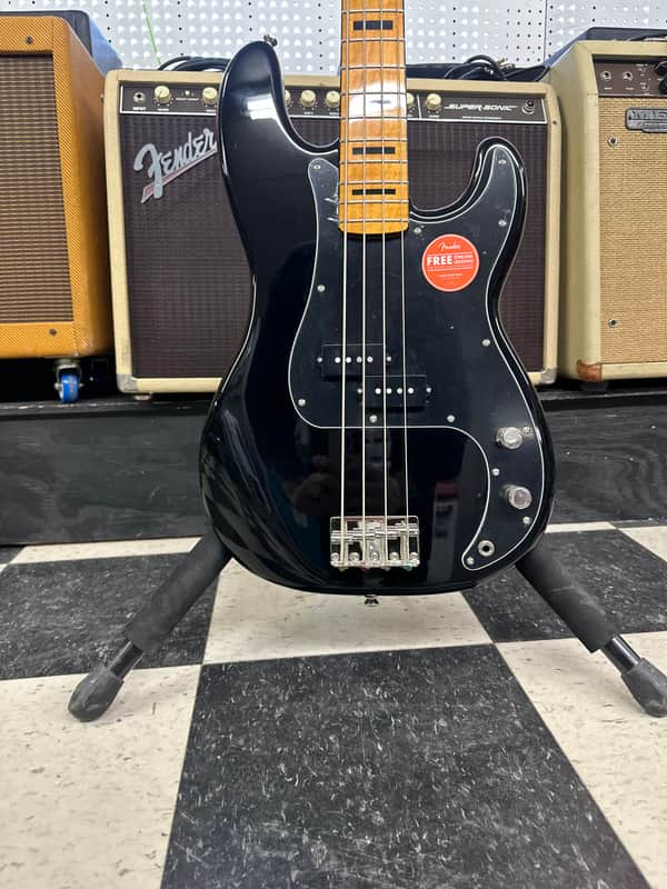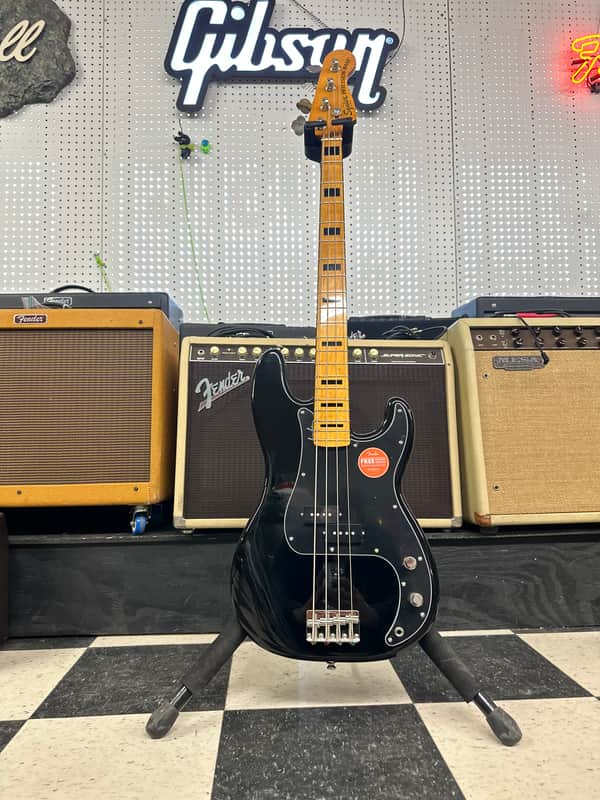Squier Classic Vibe P bass. In great shape. No big dings or blemishes. Normal wear from play But overall very clean. The electronics work on the guitar as they should. The action is low and it plays well.