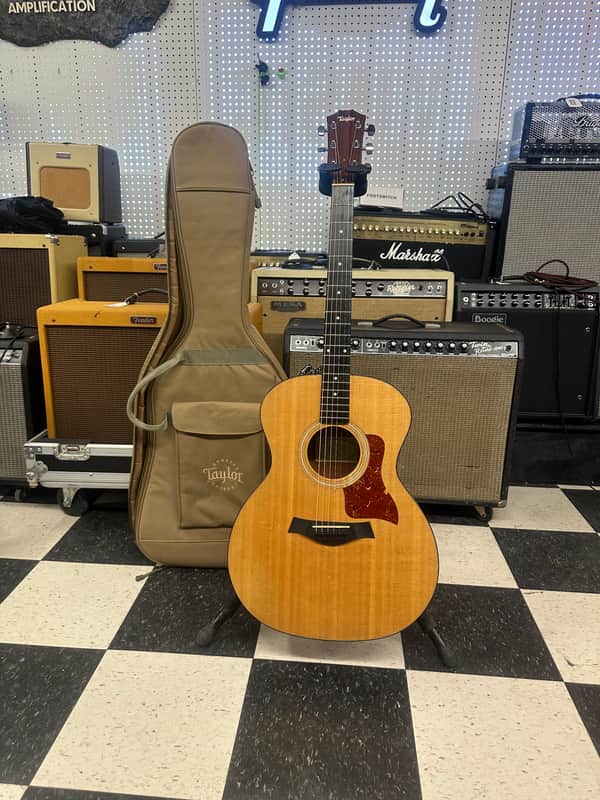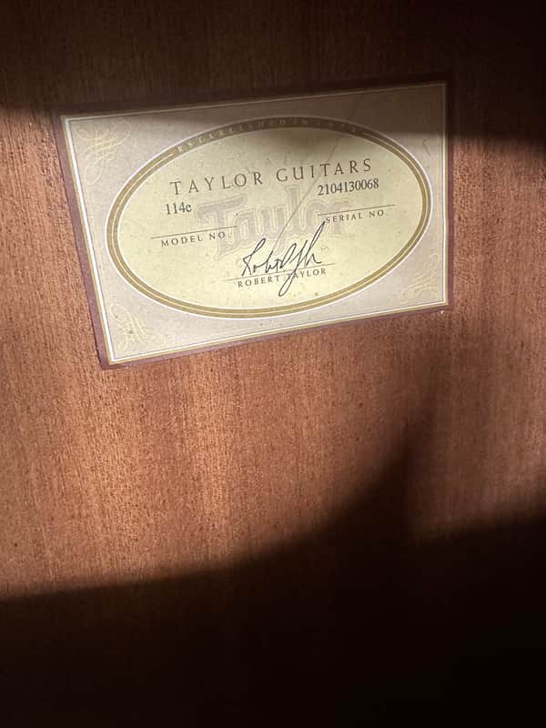 Taylor 114e acoustic/electric. In pretty good shape. Had some small dings and pick scratches. No cracks or repairs. The action is low and it plays well. It comes In the original Taylor bag.